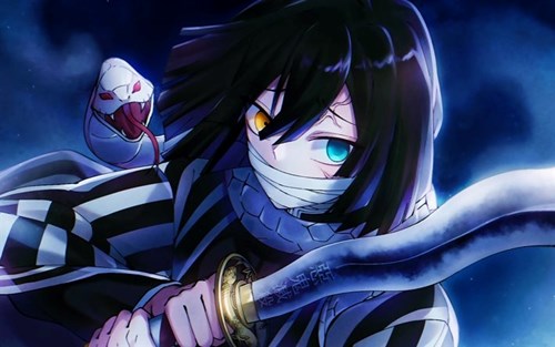 Katana con lama in acciaio nera e grigia. Impugnatura rossa e bianca. Liberamente ispirato a Demon Slayer.