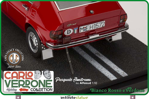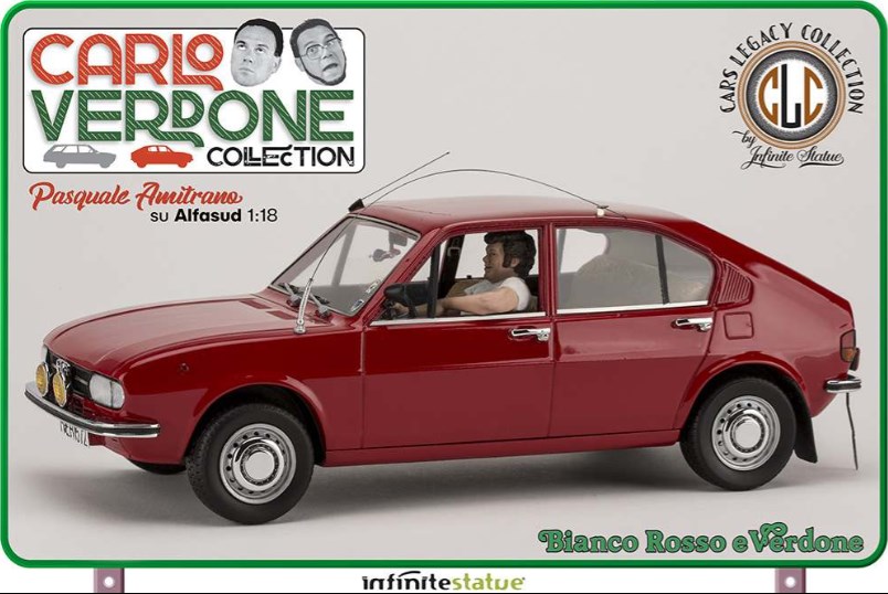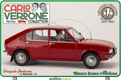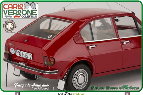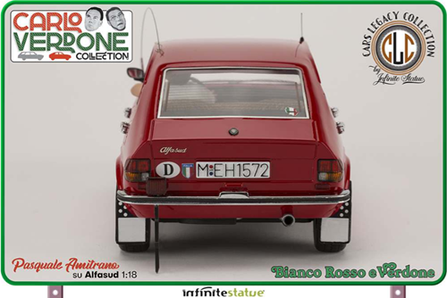 Il modello è stato studiato nei minimi particolari per riprodurre esattamente quello utilizzato nel film “Bianco Rosso e Verdone”. Ogni dettaglio è stato analizzato e ricostruito al massimo della sua perfezione, nulla è stato tralasciato. Oltre alla fedeltà del modello di Alfa Romeo qui potete ritrovare tutte le personalizzazioni che furono adottate nel film: dagli interni in “pelo” al mangianastri con la cassetta di Claudio Villa, dall’antennone alla targa fino agli adesivi dell’epoca. Questo modello è un autentico pezzo da collezione senza precedenti per il modellismo statico 1/18, una creazione di altissimo livello ed iper-dettagliata che sarà la gioia degli appassionati di auto e di Cinema Italiano.