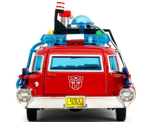 Il multiverso ci ha insegnato che tutto può succedere, anche che gli acchiappa fantasmi abbiamo incrociato sul loro cammino dei robot mutaforma provenienti da un altro pianeta ed uno di essi abbia deciso di accompagnarli nelle loro avventure. Nasce dunque questo crossover che vede Optimus Prime assumere le sembianze di una Cadillac Miller-Meteor Futura e diventi la Ecto-1