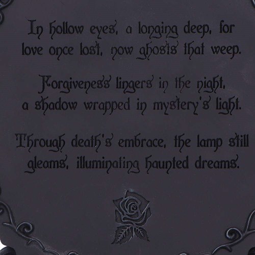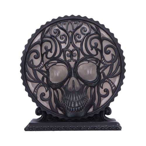 La lampada "Abbraccio della Morte" è una splendida lampada gotica che cattura l'inquietante eleganza di un'anima in eterno riposo. La lampada presenta una scultura in resina dettagliata che emana una morbida luce ambientale. Il teschio centrale è composto da intricati motivi su una base robusta. La lampada è confezionata in una scatola sicura per proteggerla e valorizzarla. Perfetta per gli amanti dell'arredamento gotico, gli appassionati di horror, i collezionisti di fantasy e coloro che sono attratti dall'estetica dark, romantica o macabra.