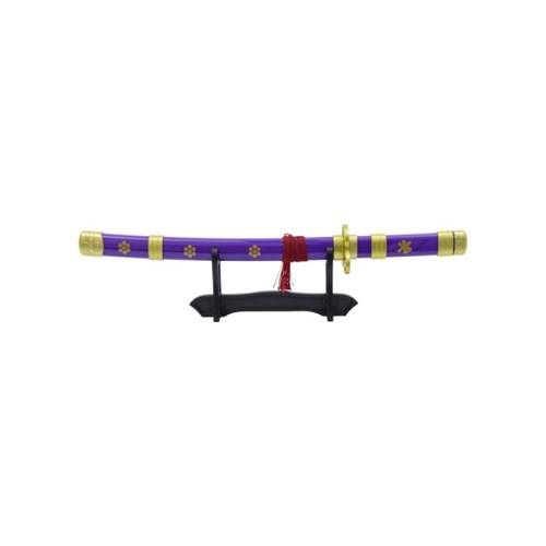 Katana fantasy con lama in acciaio, fodero e impugnatura viola. Supporto incluso.