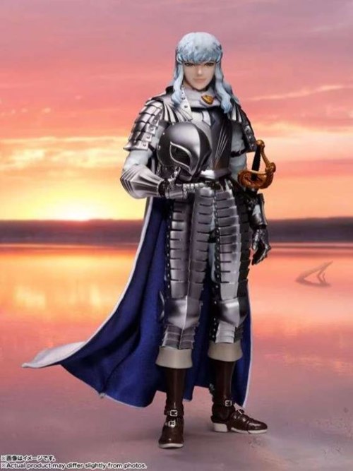 Griffith include diverse espressioni facciali, un elmo e una spada, tutti riprodotti con la tecnologia di colorazione digitale Tamashii.