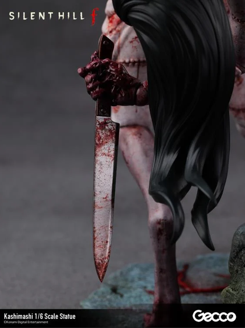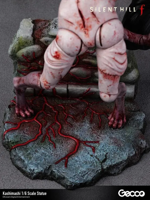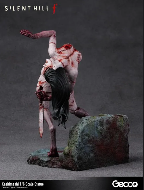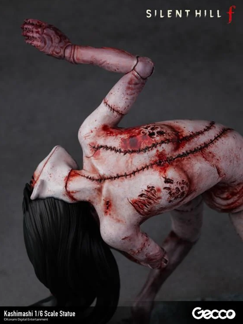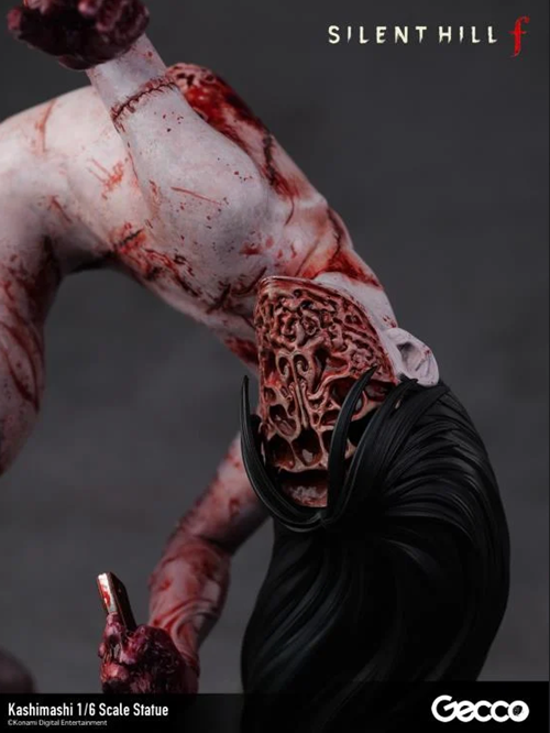 Dal horror psicologico Silent Hill f, la creatura Kashimashi che attacca il giocatore con un inquietante sorriso sul volto in varie fasi del gioco, è stata ricreata come una statua in scala 1/6. Sebbene sia una figura umanoide cucita insieme da pezzi di carne, ogni articolazione è contorta e piegata, creando un’atmosfera sinistra da ogni angolazione. Le ferite e le suture su tutto il corpo sono scolpite con grande cura nei dettagli e rese ancora più disturbanti da una verniciatura grottesca e cruda.