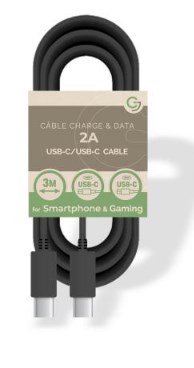 USB C/USB C Cable 5V/2A - 3m - PACKAGE-FREE - Black