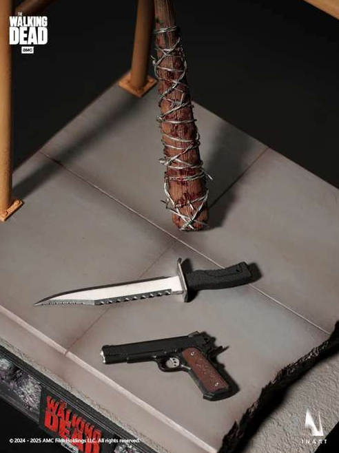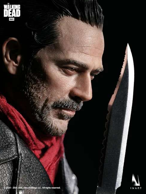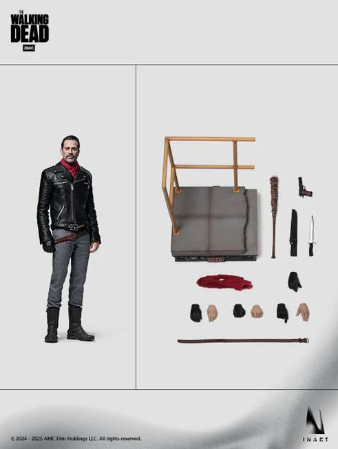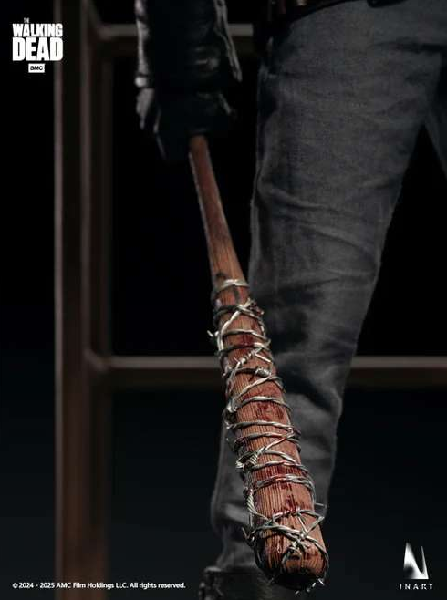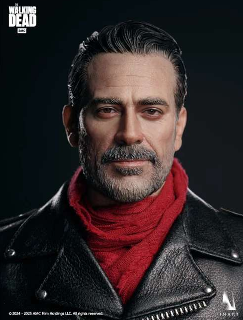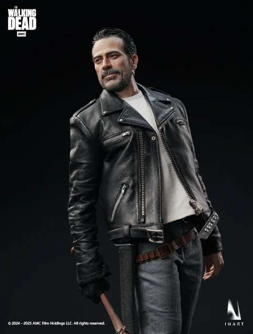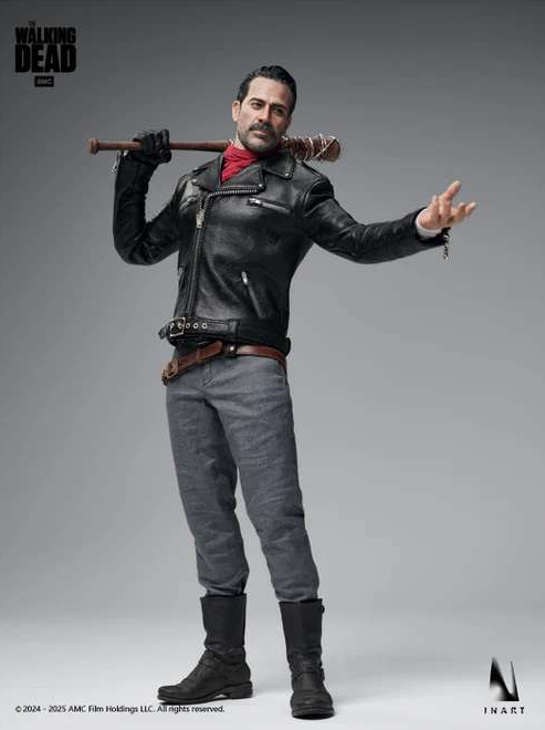 Questa action figure INART in scala 1/6 di Negan è ufficialmente autorizzata da AMC. La figure è dotata di tecnologia per il movimento degli occhi, che consente espressioni realistiche, e riproduce fedelmente il fisico alto e snello del personaggio. La sua iconica giacca di pelle include una speciale zip in metallo, perfettamente in scala e dettagliata per replicare la texture e il motivo visti sullo schermo. Completa dell’inseparabile mazza Lucille, questa figure è un pezzo da collezione incredibilmente realistico e accurato—un must-have per ogni fan e collezionista che desideri portare a casa l’universo di The Walking Dead.