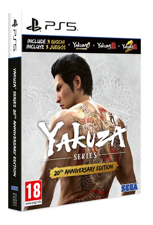 La Yakuza Series 20th Anniversary Edition è un'edizione esclusiva che celebra 20 anni della serie Yakuza! Include Yakuza 0 Director's Cut, Yakuza Kiwami e Yakuza Kiwami 2, che adesso supportano sottotitoli in FIGS.