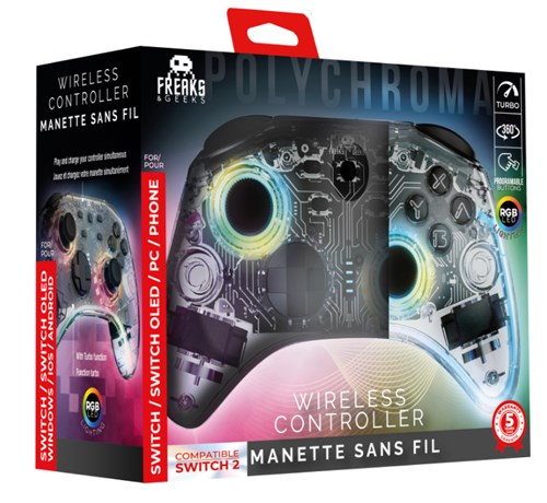 Wireless Polychroma SW Controller for Switch/PC with 1M cable - transparent with LED