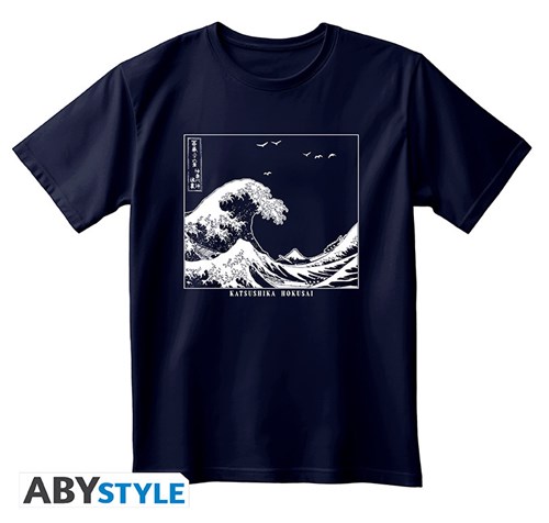 Mostra il tuo stile con questa T-shirt blu navy Hokusai – The Great Wave di ABYstyle. Ispirata all'iconica opera di Katsushika Hokusai, cattura tutta la potenza e il movimento drammatico de La Grande Onda di Kanagawa. Un must per gli appassionati di arte giapponese!