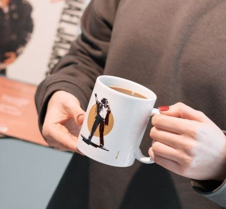 Tazza realizzata in ceramica con finitura lucida. È adatta al microonde e alla lavastoviglie. Capacità: 350 ml. Dimensioni: 12,5 x 9,5 x 8,5 cm.
