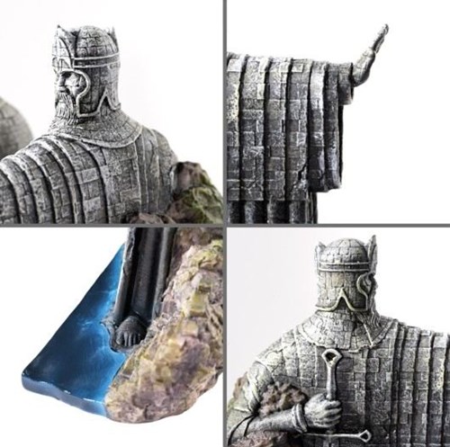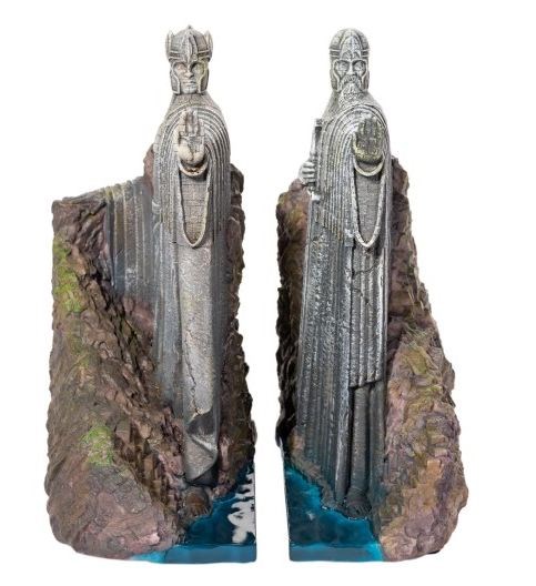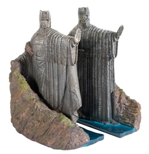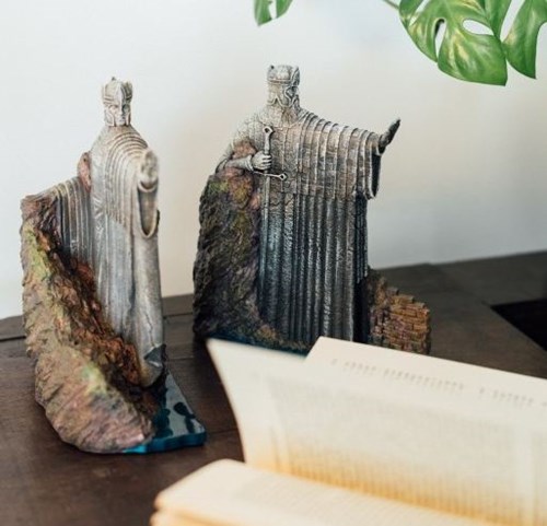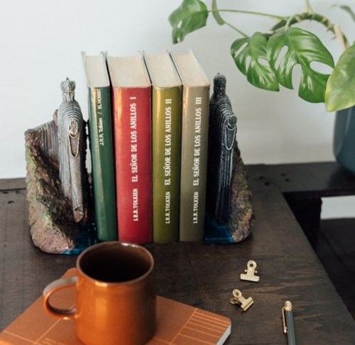 Fermalibri in due pezzi, realizzati in resina, modellati in rilievo e dipinti a mano. Ideali da posizionare ai lati di una collezione di libri sulla libreria, per tenerli in ordine. Misure: 16 x 18 x 8,6 cm circa.