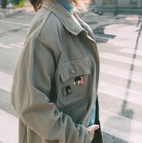 Set di quattro spille realizzate in lega di zinco con finitura smaltata. Sono dotate di una puntina sul retro per fissarle al tessuto e di una chiusura a farfalla in metallo, che si posiziona all'estremità della puntina per garantirne il fissaggio. La spilla si sgancia premendo il meccanismo della chiusura. Misure: 5 x 5 cm circa.