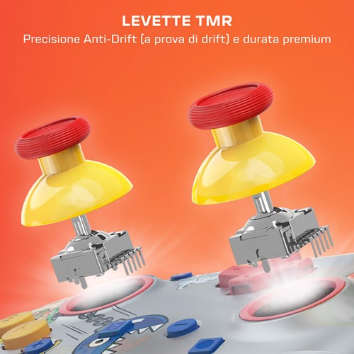 Potenzia il tuo gioco con le levette premium dotate di tecnologia dei sensori TMR (Tunneling Magnetoresistance) per ottenere più precisione, durata e reattività rispetto ai modelli tradizionali. Il pulsante C, posizionato in modo strategico, consente di accedere rapidamente alle funzioni GameChat. Scatena le tue mosse! I comandi di movimento integrati ti immergono in un gameplay più reattivo. Sfrutta la libertà di una connessione wireless affidabile con una portata fino a 9 metri per un gioco senza interruzioni e senza intoppi. Indipendentemente dal tipo di gioco, il tracciamento preciso del controller garantisce un'esperienza fluida e uniforme.